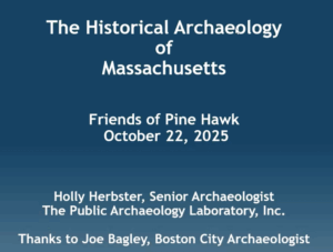 ![]() | October 22, 2025 | The Historical Archaeology of Massachusetts | Holly Herbster | |